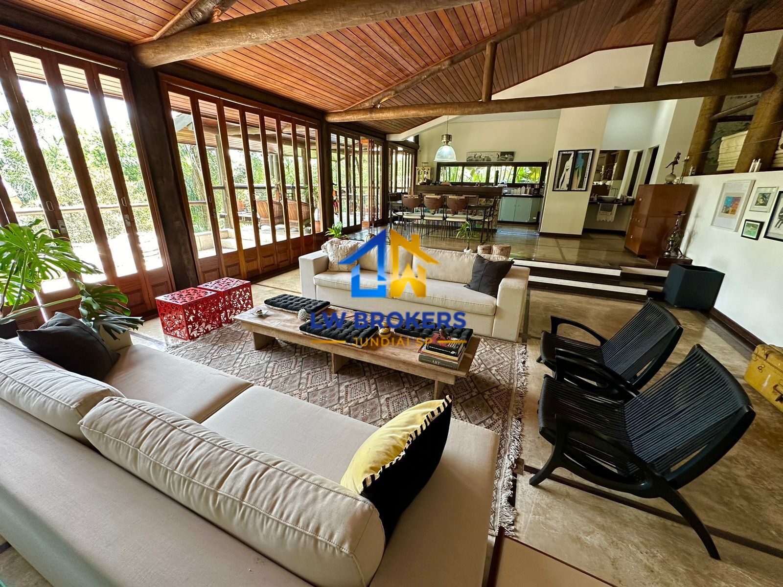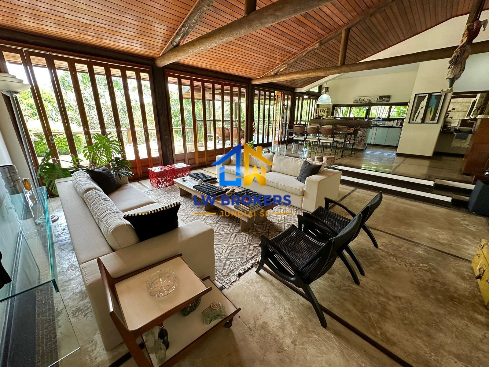 Sala super confortável em conceito aberto, sendo estar, jantar, e cozinha, com varanda e uma vista maravilhosa para a natureza preservada. Sala de TV e sala de jogos reservados.