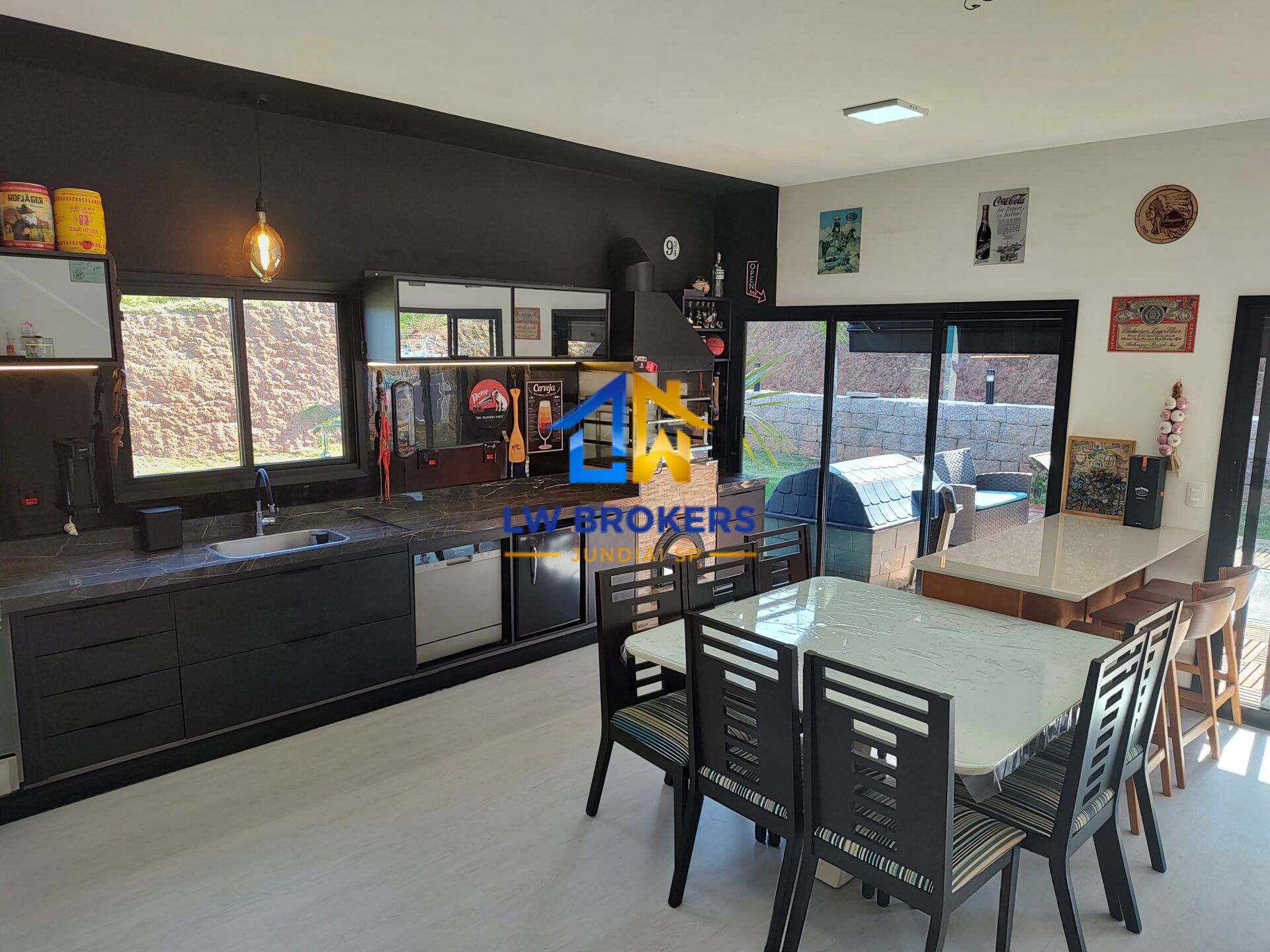 - Toldo retrátil nas portas da cozinha e churrasqueira.