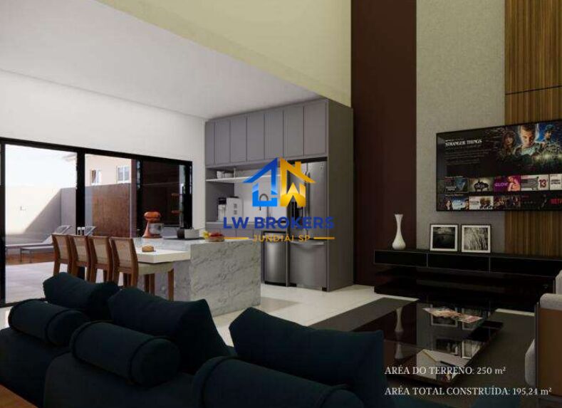 • Descrição: Imóvel com 3 suítes, 2 vagas de garagem cobertas e 2 descobertas, lavabo, cozinha com ilha integrada com a sala de jantar e espaço gourmet, quintal com 60m², aquecimento solar central, infraestrutura para ar condicionado na sala e nos quartos.
